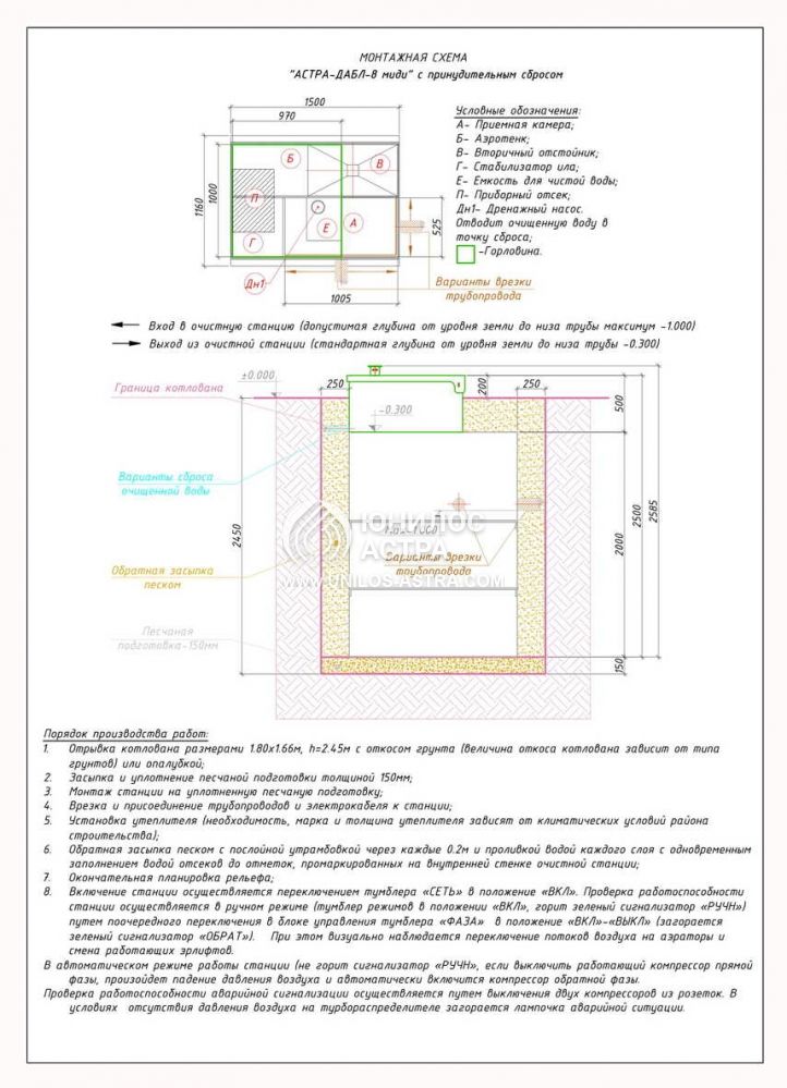 • Она перерабатывает до 1600 л/сут при допустимом залповом сбросе 350л.